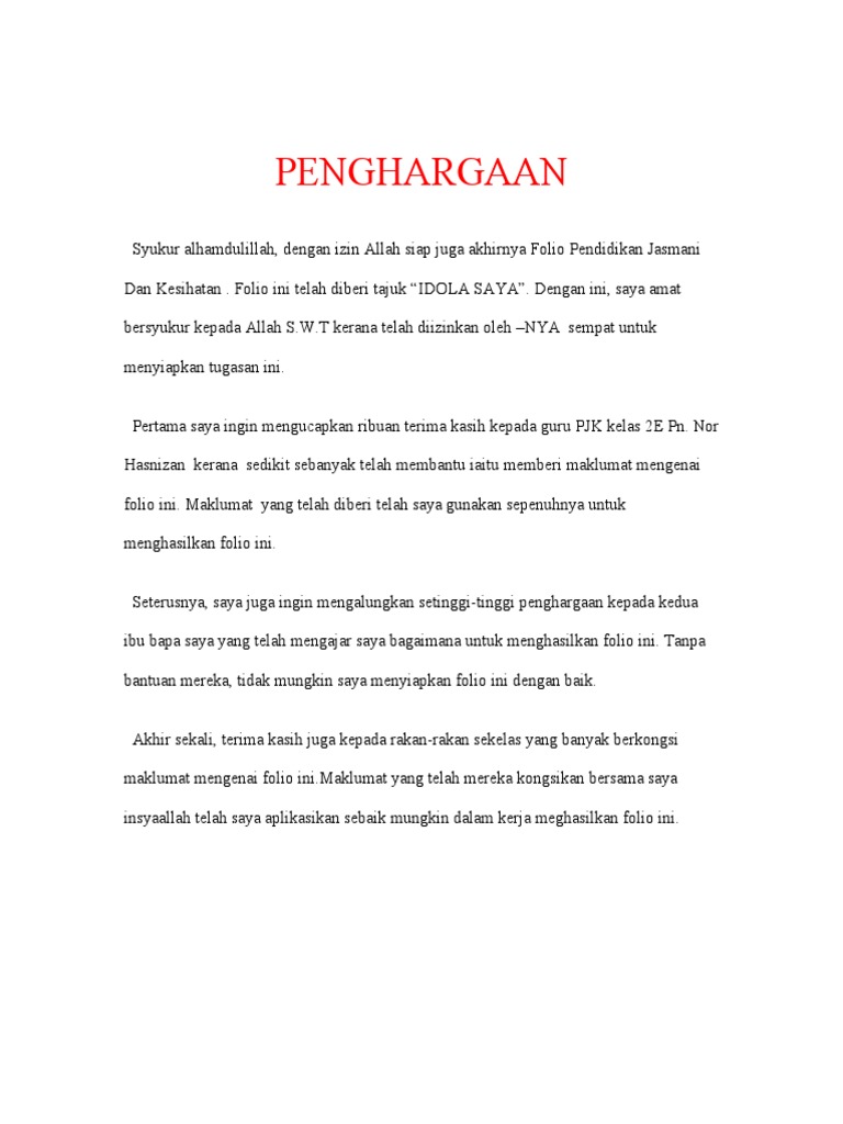 Contoh Penghargaan Kerja Kursus Pendidikan Jasmani